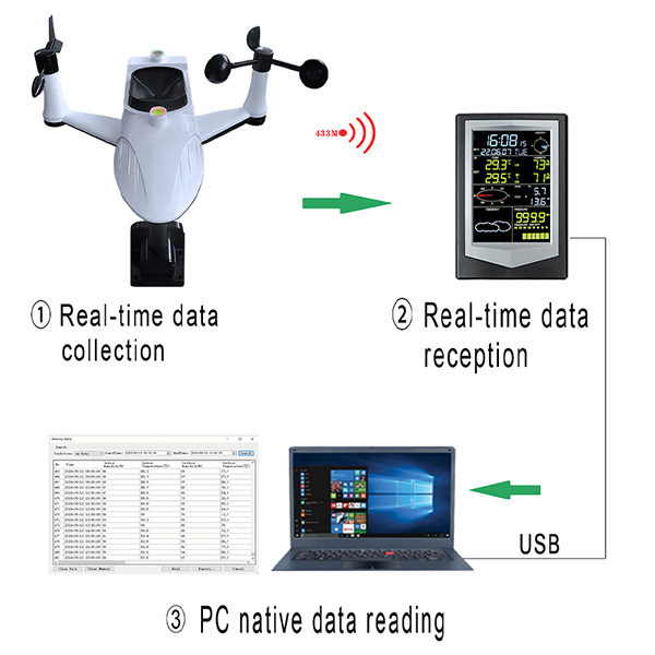 Dışarıdaki Kablosuz Hava Durumu İstasyonu, Rüzgar Yönünün Güneş Hava Ölçümü, Rüzgar Hızı, Yağmur Yağışı, Işıklandırma, UV