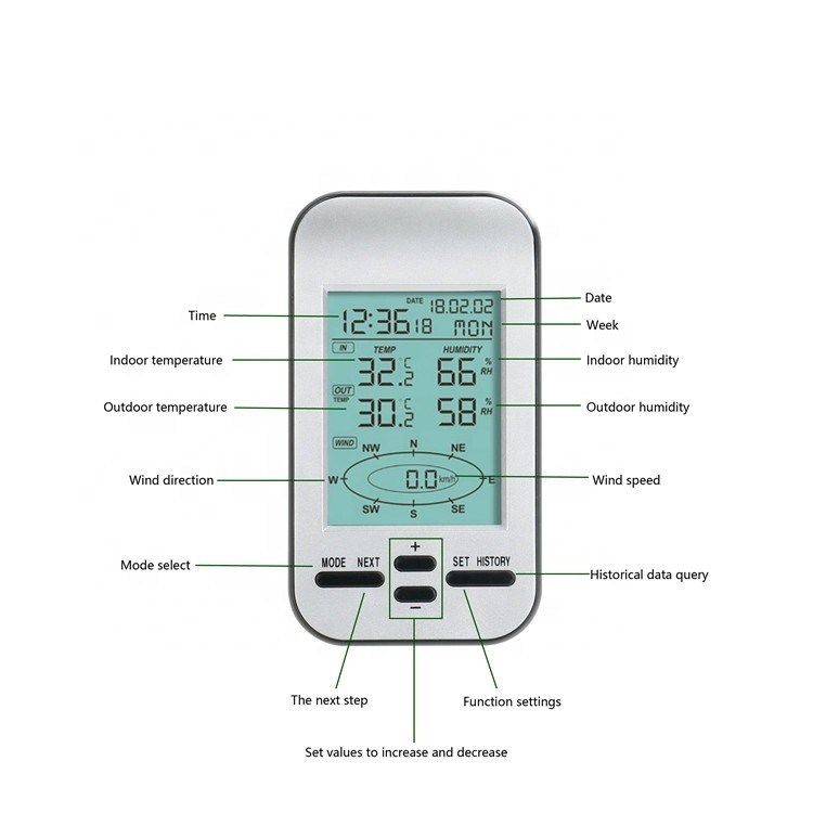 ODM Profesyonel Hava Durumu İstasyonu İç ve Dış LCD Ekranı 6